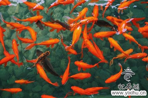 花港观鱼的石碑是乾隆皇帝下江南时所题,其中的“鱼”字,繁体写法是四点,代表火,乾隆改为三点,代表水,寓意百姓生活风调雨顺,江山稳固太平。还有种说法:“花港观鱼”四字为清康熙皇帝手迹。康熙一生崇信佛教,向有“佛爷”、“善人”之称。他孙子乾隆爷也崇尚“好生之德”。然而,在汉字里,三点为水,四点为火。繁体“鱼”字底部的四点,本为火字,鱼遇水而生,遇火必死。皇帝不忍见鱼死,便将碑文中“鱼”字底部的四点改写成了三点,意在让鱼永远欢快地生活在水里,以示皇恩浩荡,泽被万物之意。这也给后人留下了一段有趣的典故。